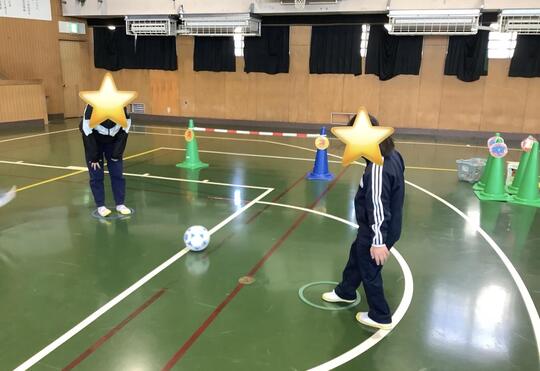10月中旬からの体育ではボールを蹴る活動をメインに取り組みました。回数を重ねるとボールを蹴るということもわかってきた児童がいたり、強く蹴ったり、真っすぐに蹴られるようになったりと様々な成長をみせてくれました。