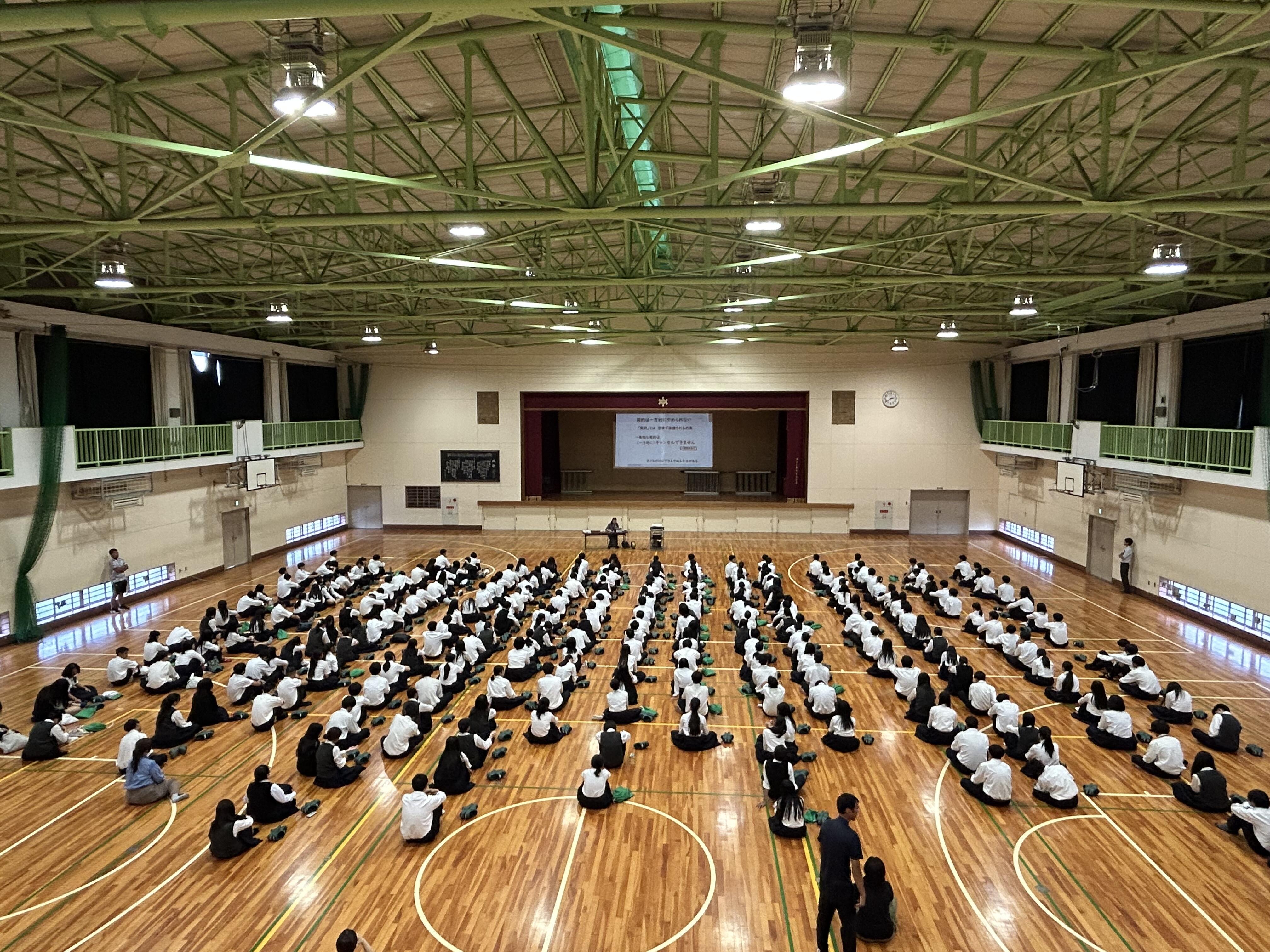 本日(9月25日)6限、全国消費生活相談員協会の澤村美賀氏をお招きして、1年生は、体育館にて、消費者教育の講演を受けました。 「契約」、インターネット通販やインターネットのやり取り、消費者トラブル等について詳しい説明をしていただきました。
