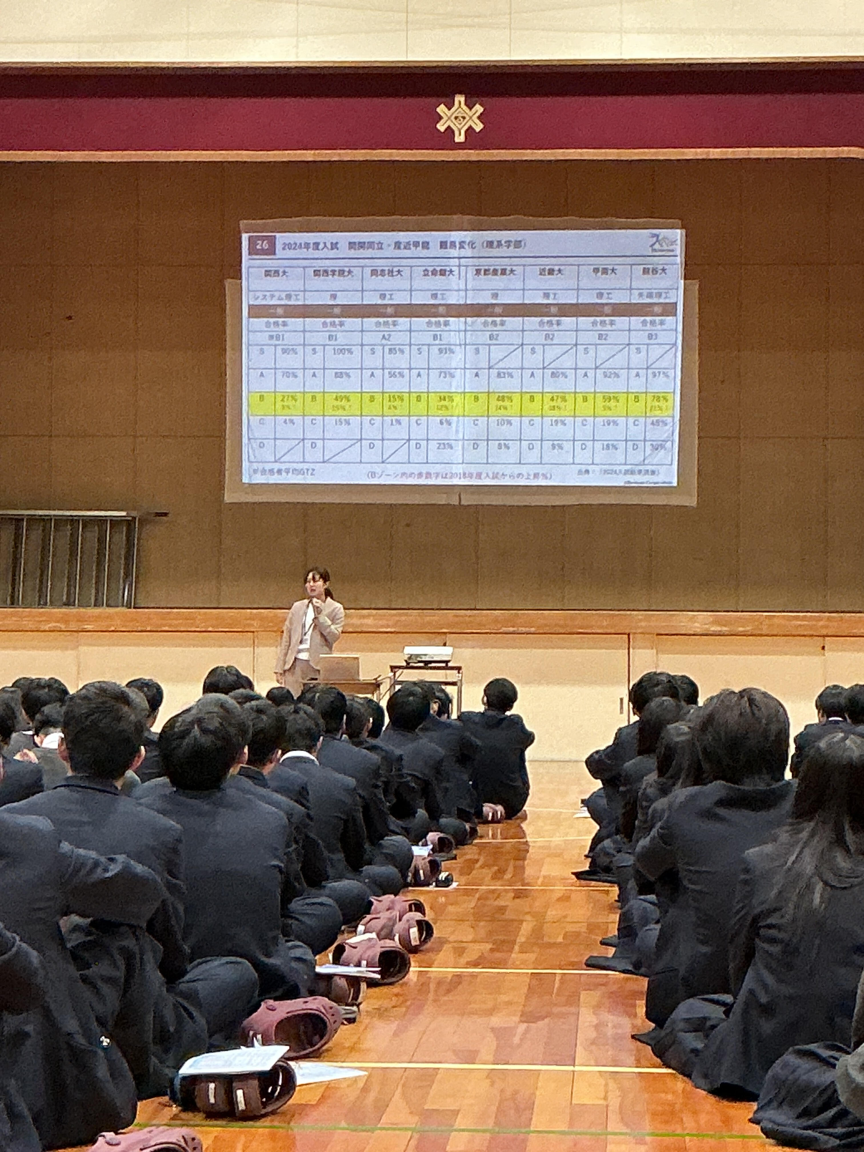 本日(R7.11.13)6限、体育館にて、2年生対象に進路講演会を行いました。