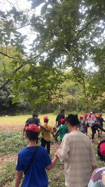 おはようございます。洗面・歯磨き後に検温しました。遅くまで起きていた児童もいましたがみんな元気です。 散歩では、涼しいなか気持ち良い森林浴となりました。森の中の広場でラジオ体操をしました。 朝食、荷物整理して帰ります。 これでブログは終了します。