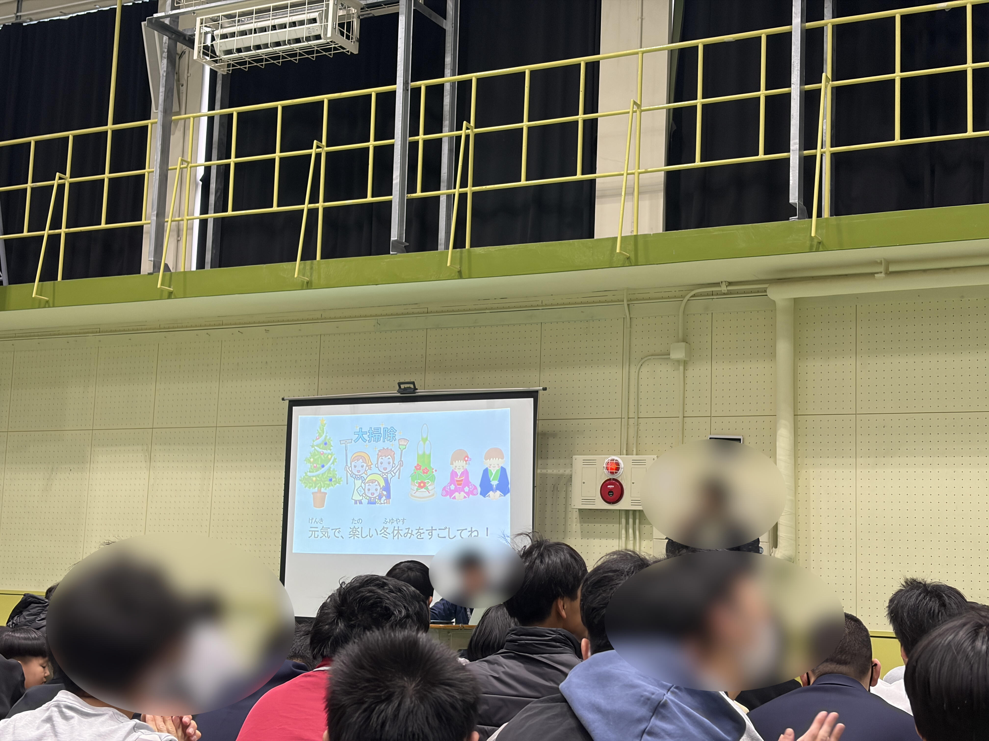 12月24日、全校児童生徒が集まって、体育館で終業式を行いました。