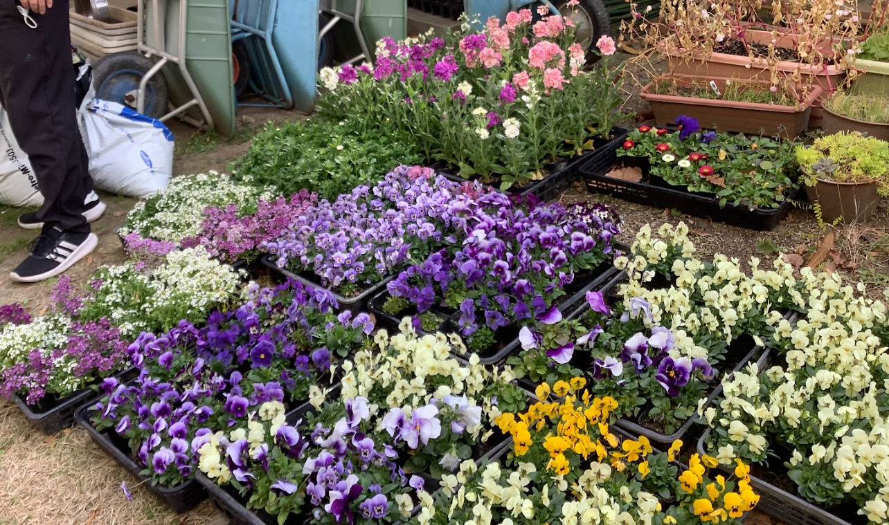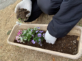 園芸高校の生徒の皆さんが心を込めて育ててくださった花の苗(パンジー・ビオラ240株、ノースポール40株、アリッサム40株、ストック80株)を使って、高槻支援学校の児童・生徒が寄せ植えに取り組みました。