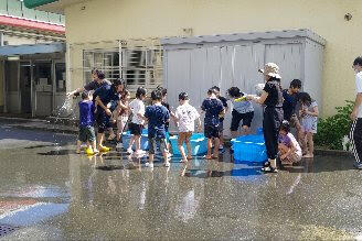先週末でプール学習を終了しました。今年は暑かったのと、雨が降る日が少なかったので、プールでの学習は大盛況です。9月に入っても、まだまだ暑い日が続き、水の冷たさを感じることなくプール学習を終えました。夏休み後半の登校日に入れた小学部は一つの学年で独占できて、ゆったり入れて大喜びでした。またプール最終の11日も、前夜の大雨が朝には回復。高等部の生徒たちが楽しむことができました。小学部棟横の水道付近では、この時期、授業で水遊びをする子どもたちもいます。低学年はそれぞれが水遊びを楽しんでいますが、高学年になると子どもたち同士の関わりが大きい分、友だちや先生に水をかけて楽しむ児童も。私も写真を写しに行くタイミングで狙われ、あわや水浸しになるところでした。水をとおして、さまざまな活動を楽しんでいます。