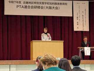 昨日15日、令和7年度近畿地区特別支援学校知的障害教育校PTA連合会研修会(大阪大会)が府立出来島支援学校で開催され、本校からPTA会長と教頭が出席してきました。 午前中の講演会は、 ~『親なきあと』がくるまえに~ 今、私たちができること と題して、一般社団法人『親なきあと』相談室関西ネットワーク 代表理事 藤井 奈緒 氏にお話をいただきました。本校の保護者にも聞いていただきたい、とても参...