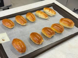 1年生の食品生産分野でコッペパン作りを行いました。材料は・・・強力粉、薄力粉、上白糖、スキムミルク、ドライイースト、マーガリン、食塩、卵、温水です。 ↓各班のメンバーがテーブルを移動しながら、そこに置いてある材料を計量し、準備します。 ↓材料が揃っているか、指さし確認を行います。 ↓粉をふるいにかけて細かくし、更に卵を混ぜて、こねていきます ↓さらにバターを加えてこねていきます ...