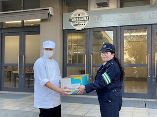 本日16日、河内警察署の職員のみなさまからご注文を受けていた「焼き菓子」を納品しました。これは、各学年の食品生産分野で作った焼き菓子をセット販売しているものです。2年生の生徒たちが、商品を運び出しました。今回も100セット以上ものご注文をいただきました。いつも本当にありがとうございます!