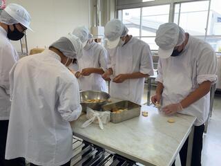 1年生の食品生産分野では、 『創立20周年記念たまがわフェスティバル文化の部』で 販売する「くるみ入りクッキー」の袋詰め作業をしていました。 これはおいしいんです!買い逃さないようにご注意を!