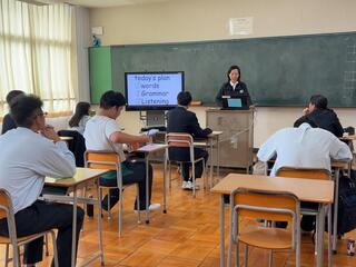 3年生の英語の授業では、過去の表現について学んでしました。いつものように英語の質問に答えるところから始まり、途中でペアを組んで英会話もしていました。今回は、英語の近畿の天気予報から、昨日と今日の天気を聞き取る練習をしました。生徒たちは、結構しっかりと聞き取っていたと思います。