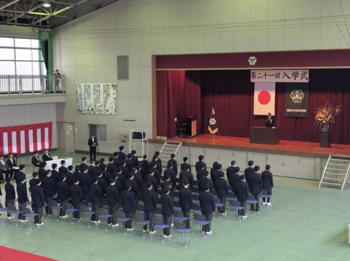 本日、入学式を行いました。生徒たちの表情には、中学生の雰囲気を残しつつ、新しい学校生活への期待や不安が入り混じっている様子がうかがえました。今春卒業した18期生の先輩たちが卒業式で見せてくれた誇らしげな表情へと、これからどのように成長していくのか、とても楽しみです。 花園桜通りの桜も、21期生の門出を祝うように、美しく咲き誇っていました。
