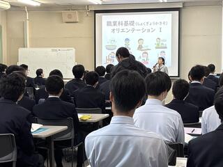 サーバーエラーの繰り返しで、なかなかブログをアップできません・・・。困ったものです。 さて、1年生は、本日の午前中に「職業基礎オリエンテーション」を行いました。これは、職業学科の各分野を紹介するものです。夏休み前まで、全分野を体験し、自分がどの学科をやってみたいか、あるいは適しているか考えます。私は始まったところを見てきましたが、緊張感を保ちながら、静かに話を聞くことができていました。 8つ...