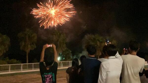 修学旅行最後の夜には、サプライズで打ち上げ花火が上がり、子どもたちは大きな歓声をあげて喜んでいました。