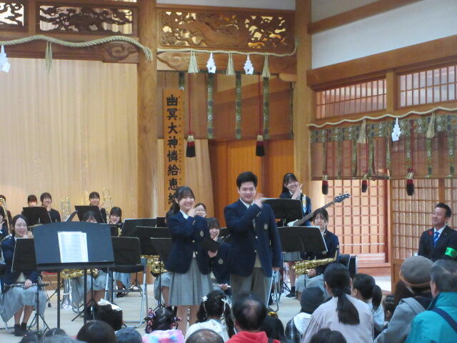 11月7日(土)、出雲大社大阪分祀において「黒山地域安全大会」が開催されました。神殿において、TOMISUI(吹奏楽部)とTDC(ダンス部)が公演させていただきました。 TOMISUI(吹奏楽部)は、神殿において2年生バンドが演奏しました。 「ディープパープルメドレー」、「魔女の宅急便」、「新宝島」などの楽曲を披露しました。神殿には、立ち見の方で溢れ多くの方にお集まりいただきました。 その後...