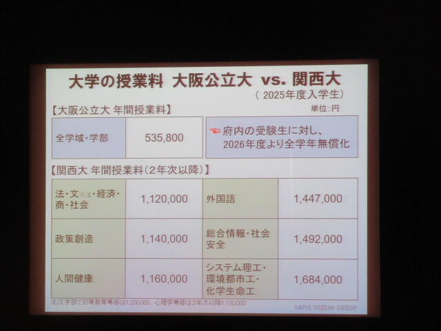 予備校の先生から1・2年生の時期からの大学受験に向けてのスケジュール、3年生の時期における大学受験のスケジュール、大学で必要な入学金や授業料、1・2年時からの学習スタイル、保護者の方に心がけていただいきたいことについてのご講演がありました。