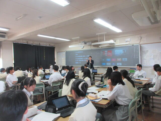 10月20日(月)5限目、「英語コミュニケーションⅠ」において研究授業が行われました。大阪府教育センターの経験2~4年目の教員対象のインターメディエイト研修の研究授業です。 本時は、異なる文化圏の人と非言語的コミュニケーションによる誤解が生じた際にどのように解決するかをグループワークで考えます。そして、ロールプレイによりグループで考えた対処法を実践することでコミュニケーション能力の向上をめざし...