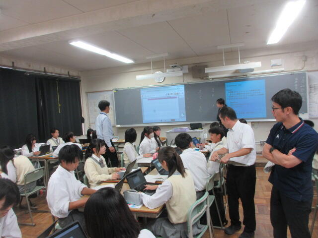 10月20日(月)5限目、「英語コミュニケーションⅠ」において研究授業が行われました。大阪府教育センターの経験2~4年目の教員対象のインターメディエイト研修の研究授業です。