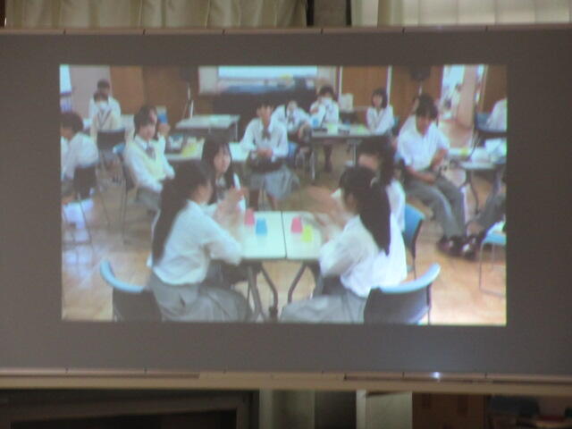 前半は、本日の英語科研究授業の研究協議が行われました。担当された先生の振り返りがあり、英語科の先生方や見学された先生方からの感想と助言などがありました。