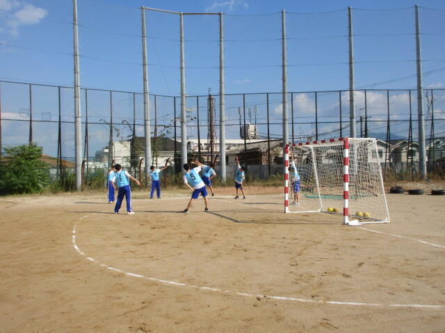 10月27日(月)、2年「体育」の研究授業が行われました。本時の目標は、「ハンドボールのチームとして立てた作戦をもとに協働してプレーし、試合を通して状況判断や役割を遂行する。次回に向けてチームで振り返りを行うことで改善点を整理する」です。