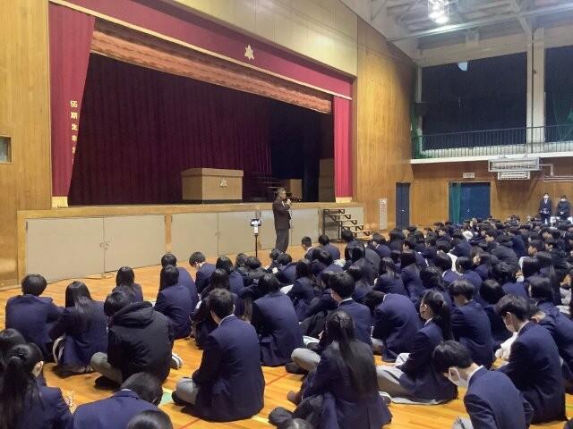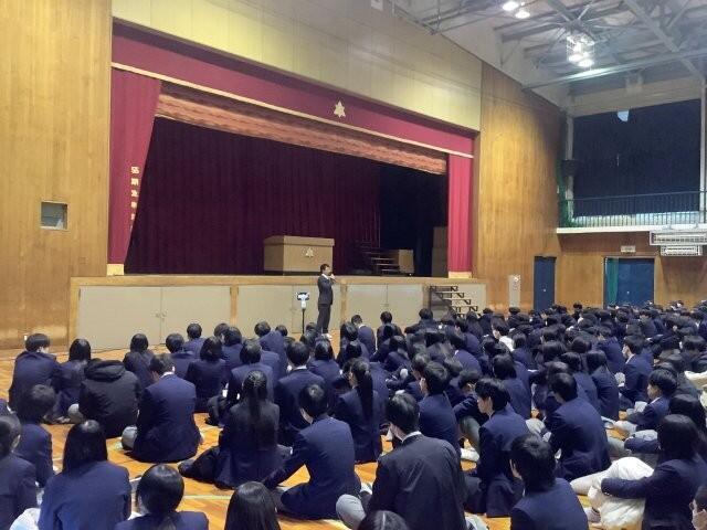 校長式辞として、前半は、冬休みなどの生徒たちの活躍の様子を紹介しました。3年生にとっては、1月から共通テスト、一般入試が続いていきます。クラスや学年の仲間と励まし合いながら受験勉強に取り組み、進路実現につなげてほしいと思います。また、2年生にとっては、3学期は、3年生の0学期とも言われます。受験に向けて本格的に動いてほしいと思います。