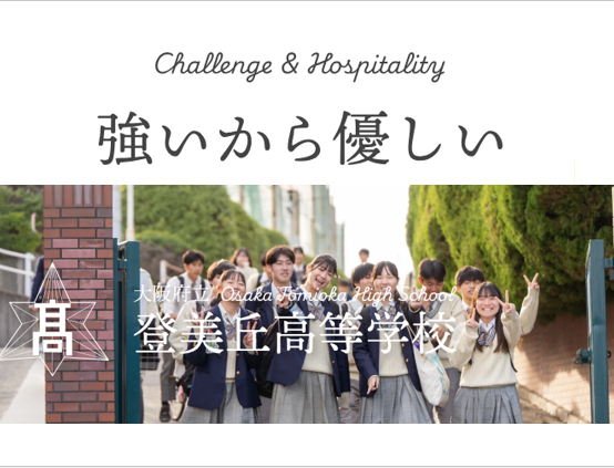 本年度も校長ブログにて「登美高生は強いから優しい」を大切にし、活躍している登美高生の姿をお届けします。保護者の皆さま、地域の皆さま、同窓会の皆さまには、本年度も大変お世話になりますがよろしくお願い致します。