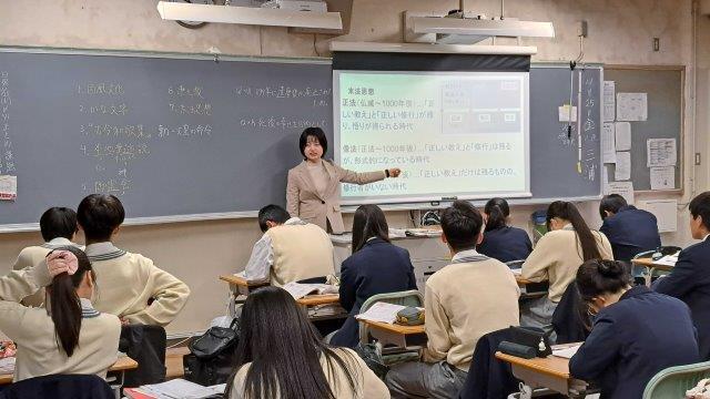 本校では、「主体的・対話的で深い学び」の授業をめざして「視覚化・構造化・協働化」を意識し、授業を展開しています。現在、授業見学月間として組織的な授業力向上の取り組みを行っています。各先生方が、授業観察シートを活用して相互に授業見学を行うことで授業力向上に取り組んでいます。 11月25日(火)1限目、2年「日本史探究」において初任者研究授業が行われました。 本時は、国風文化ということで、10~1...