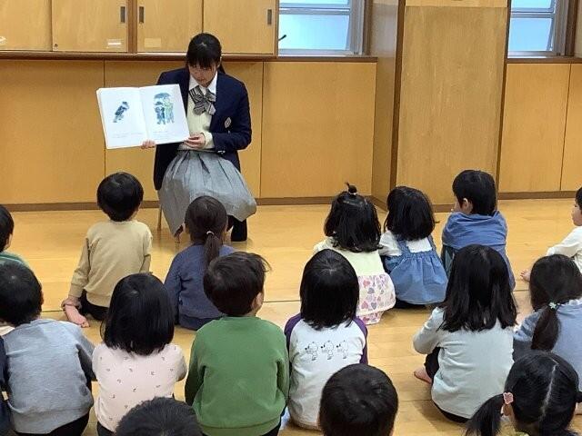 10月23日に本校で実施した「絵本の読み聞かせ教室」を受け、本日放課後、学校近くにある麦の子保育園で"出張読み聞かせ"の実践に挑戦しました。 生徒たちは事前に読む絵本を選び、練習を重ねて万全の準備で本番に臨みました。当日は複数の教室に分かれて読み聞かせを実施。園児たちは目を輝かせながら耳を傾けてくれ、生徒たちにとっても嬉しく、楽しいひとときとなりました。 今回の経験は、子どもたちとの交流を通して、...