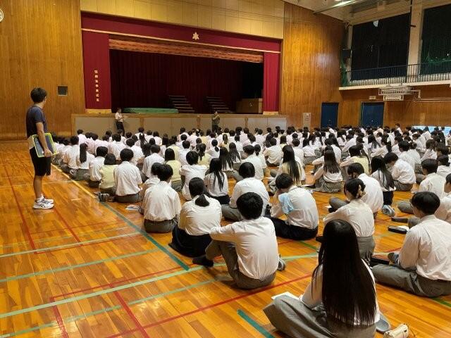 本日6限のHRにおいて、2年生は体育館で学年集会を行いました。 内容は修学旅行のしおりを用いた読み合わせと、諸注意の確認でした。 生徒たちは全員、真剣な様子で話を聞いていました。 本番では約300人が一斉に行動します。楽しむことも大切ですが、規律を守り、充実した修学旅行となるように心がけましょう。