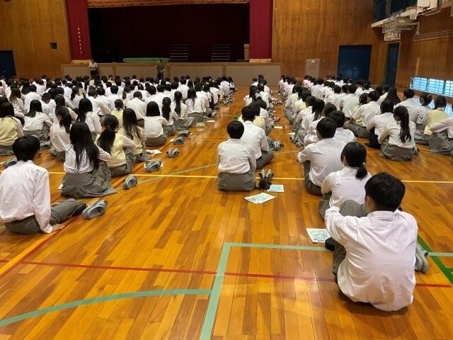 生徒たちは全員、真剣な様子で話を聞いていました。 本番では約300人が一斉に行動します。楽しむことも大切ですが、規律を守り、充実した修学旅行となるように心がけましょう。