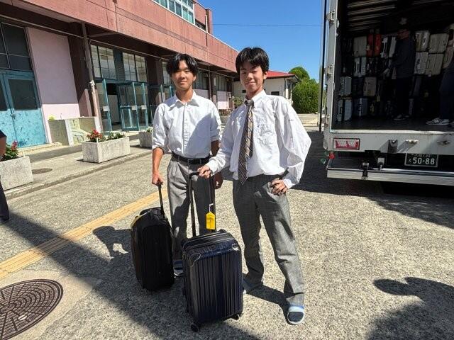 今年度の修学旅行では、事前に荷物を発送することになっています。 本日11時30分から、2年生は自分の荷物をトラックに積み込む作業を行いました。朝の登校時には、大きなキャリーケースを運ぶ生徒の姿も見られました。