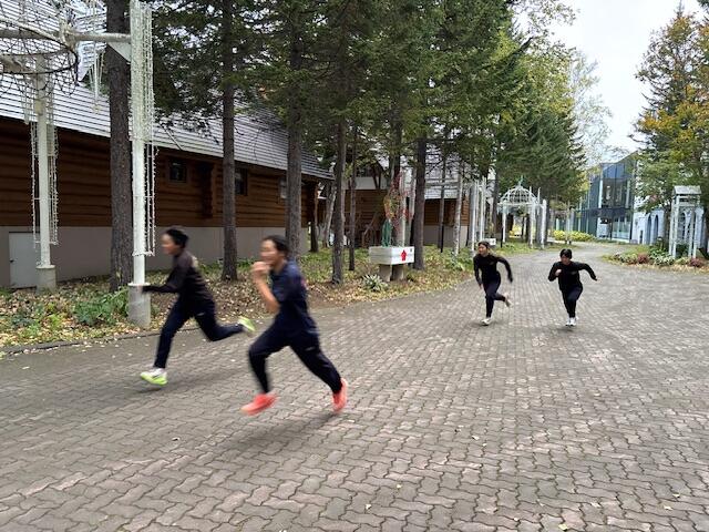 2年修学旅行3日目の朝を迎えました。陸上部は起床前に朝練をしています。顧問の先生と一緒にトレーニングです。