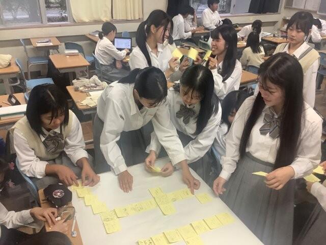 本日7限、2年生は修学旅行の振り返りとして、それぞれの感想や思い出を付箋に書き出し、クラスごとに1枚のポスターを作成しました。 完成したポスターは、廊下に掲示する予定です。 1年生の皆さん、ぜひ来年の参考にしてください!