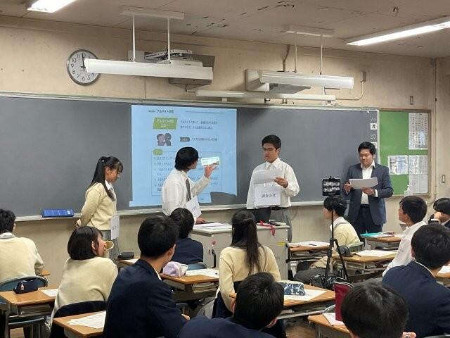 民法改正によって18歳成人となり、人生経験の少ない若年層が消費者問題に巻き込まれる事案が急増しております。副業詐欺などに被害に巻き込まれないことを目的として、来年18歳を迎える2年生にて消費者教育を実施しました。