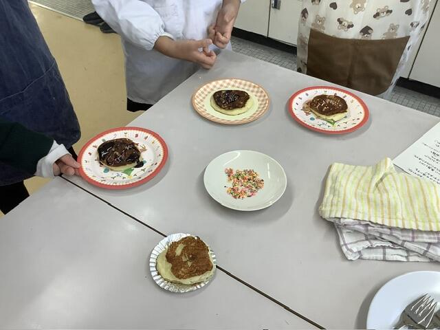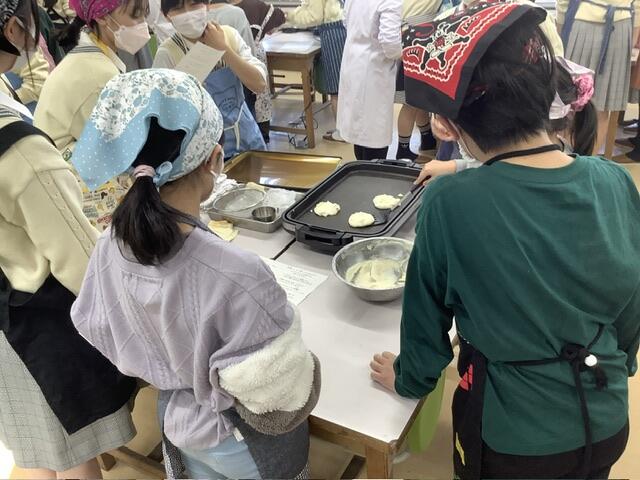 午後から本校クッキング部が登美丘南小学校に訪問して交流会を行いました。登美丘南小学校の児童の皆さんとクッキング部のメンバーが班に分かれて一緒に米粉を使ったパンケーキを作りました。コミュニケーションも弾み、楽しい和やかな時間を共有できました。「美味しかった!」「優しく教えてくれて嬉しかった!」「楽しかった!」「またやってほしい!」と児童の皆さんが感想を言ってくれました。