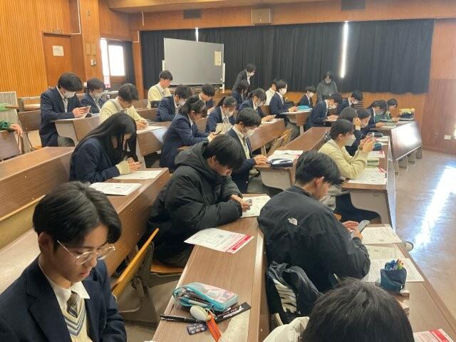 本日、終礼後に第3回共通テスト説明会を行いました。受験上の注意点や受験票の確認、自己採点集計のためのアカウント登録、志望校登録など、受験前に必要な事前準備について説明を行い、あわせて実際の登録作業も行いました。