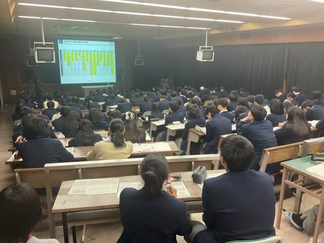 3年生の授業後、共通テストを直前に控えた生徒たちを対象に説明会を行いました。 受験会場への入室時間、持ち物、自己採点の方法など、当日に向けた大切な注意事項が丁寧に説明されました。 説明の最後には学年主任の先生から力強い激励の言葉があり、生徒たちの表情にも気持ちの引き締まる様子が見られました。 いよいよ実力を発揮するときです。みなさん頑張ってください!!
