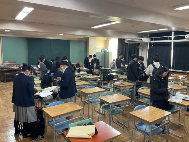 本日の3年授業終了後、共通テスト自己採点集会が行われました。自己採点結果と志望校の入力、確認を行いました。
