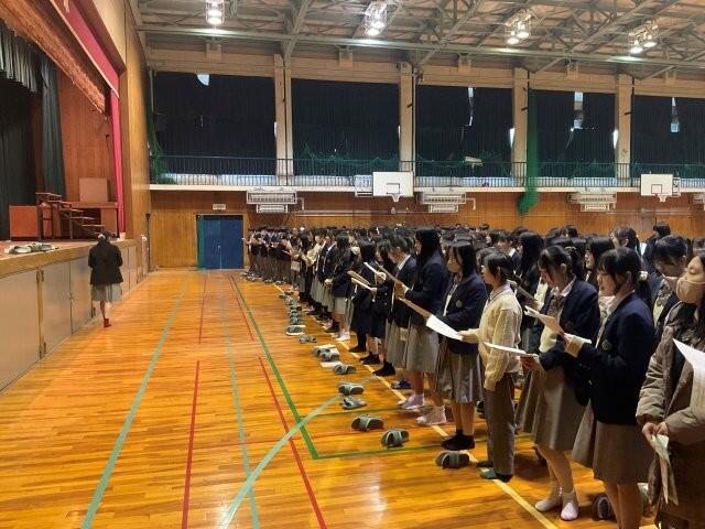3年生のHRの時間に、式歌練習(校歌・卒業の歌)を行いました。 はじめに、体育館や各教室に分かれ、パートリーダーの指揮のもとで練習を行いました。 【男子】 【ソプラノ】 【アルト】 その後、全員が体育館に集合し、全体練習を実施しました。 よく声が出ており、さらに指揮者から細かな指摘やアドバイスもあり、生徒たちの意識の高さが感じられました。 次回は1月30日(金)に練習を...
