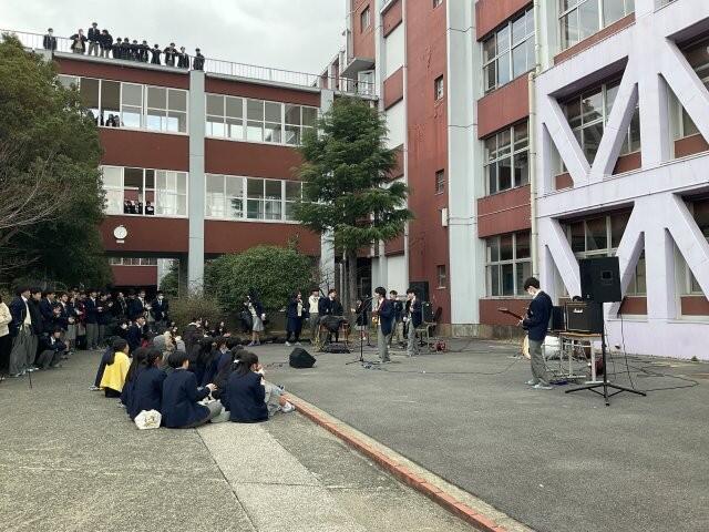ギターのやさしい音色やリズム感ある演奏、伸びやかな歌声が冬の空気の中に広がり、校内に温かな雰囲気を届けてくれました。
