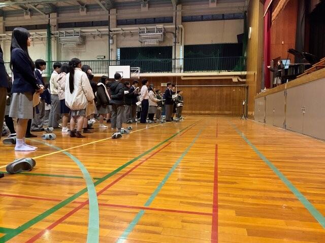 1,2限は授業を行い、3限はこれまで3年間使用してきたChromebookの返却、4限は前回にひきつづき、体育館で卒業式の歌の練習を行いました。