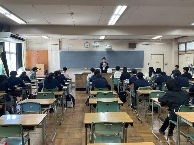 修了式終了後、12時45分より生物講義室で、国交立大・難関私大合格体験談を聞く会を行いました。1年生12名、2年生6名が参加しました。合格者8名《大阪公立大学、和歌山県立医科大学、立命館大学、関西学院大学、関西大学》に来てもらい、その中の6名のに話をしてもらいました。入試制度や受験勉強を始めた時期、勉強の仕方・作戦、成功談・失敗談、など熱く語る先輩たちの話を、1・2年生はメモを取りながら真剣な表情...