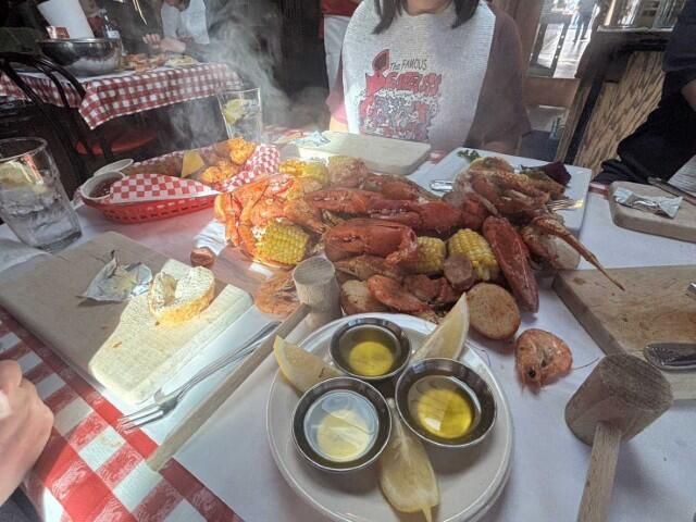 夕食はシアトル市内にて、「The Crab Pot」でシーフードを楽しみました。現地ならではの食文化にも触れることができ、充実した一日となりました。