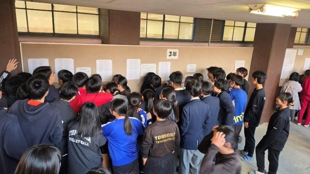 本日9時より、下足室通路にて新2・3年生のクラス発表を行いました。発表の瞬間には、生徒たちの歓声があがり、大いに盛り上がっていました。