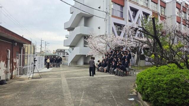 本日、3・4時間目に2・3年生のクラス写真を撮影しました。春の日差しが心地よく、満開の桜が校舎を彩る中、絶好の撮影日和となりました。