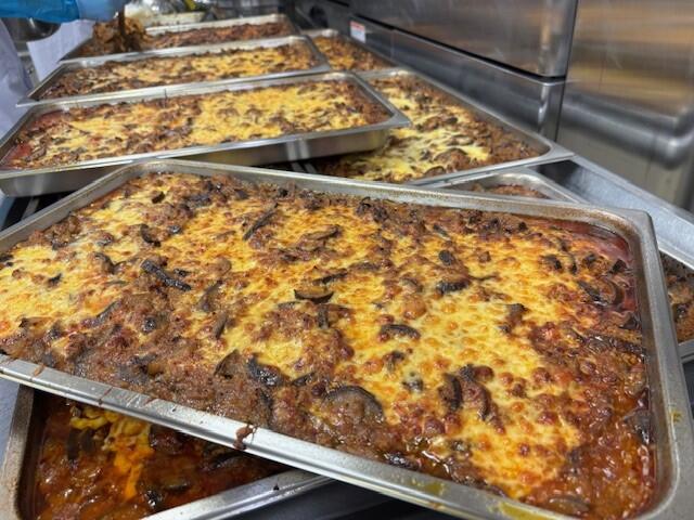 富田林産のなすをたくさん使って、大きなミートグラタンができました。