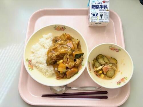 秋野菜カレー、ゆず風味サラダ、牛乳