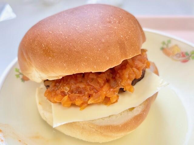 セルフハンバーガーは、ふわふわのパンにパティ、野菜たっぷりのトマトソース、