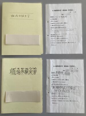 事前学習では、前年度に職場体験実習に行った先輩たちが取り組んでいる様子の動画を見たり、