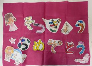 3年生はお祝いの出し物で、「こんにゃく~ん」の曲に合わせた布を振るダンスと、お祝いの言葉を送りました。