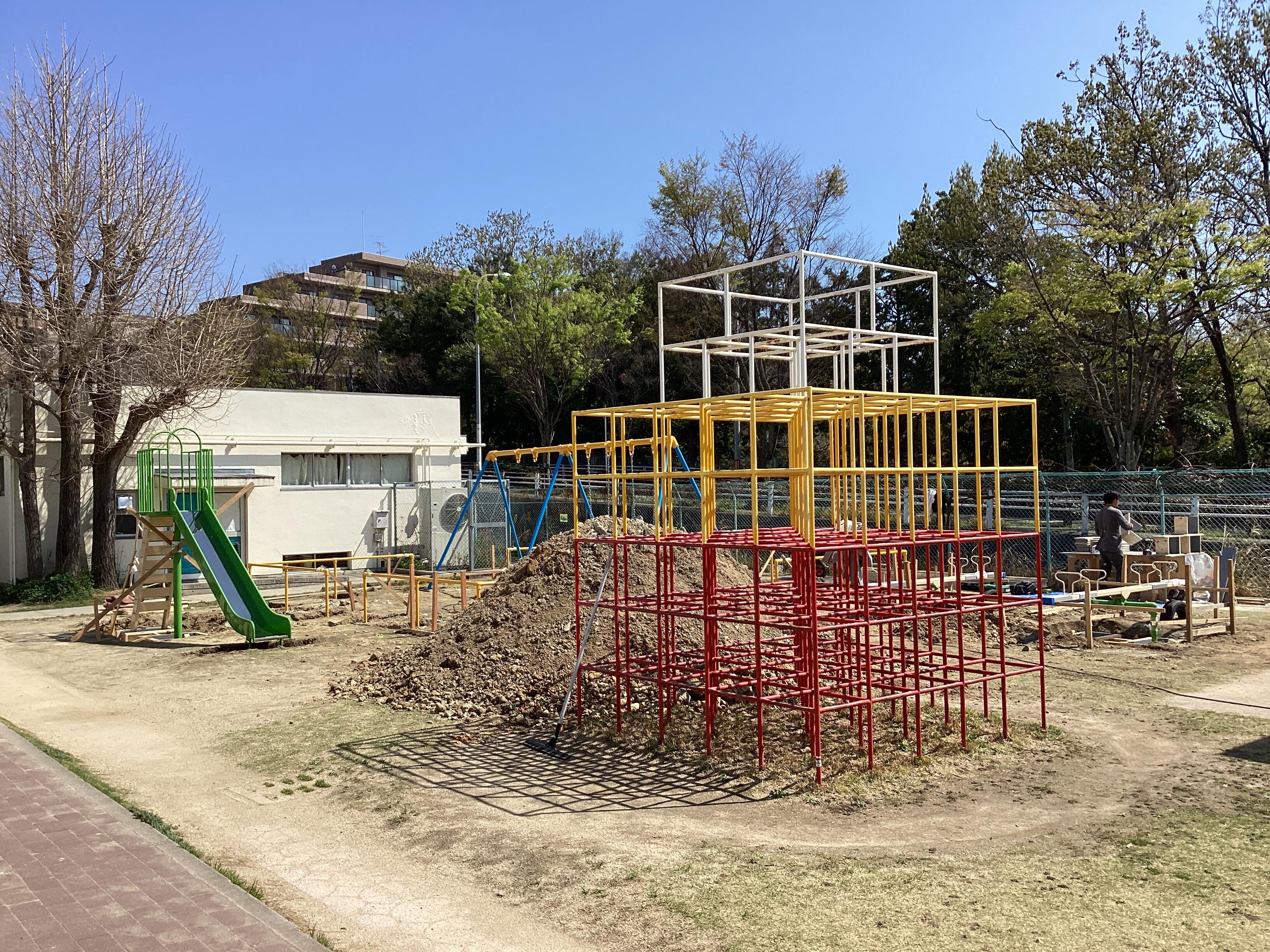 新しい遊具を取り付ける工事が進んでいます!