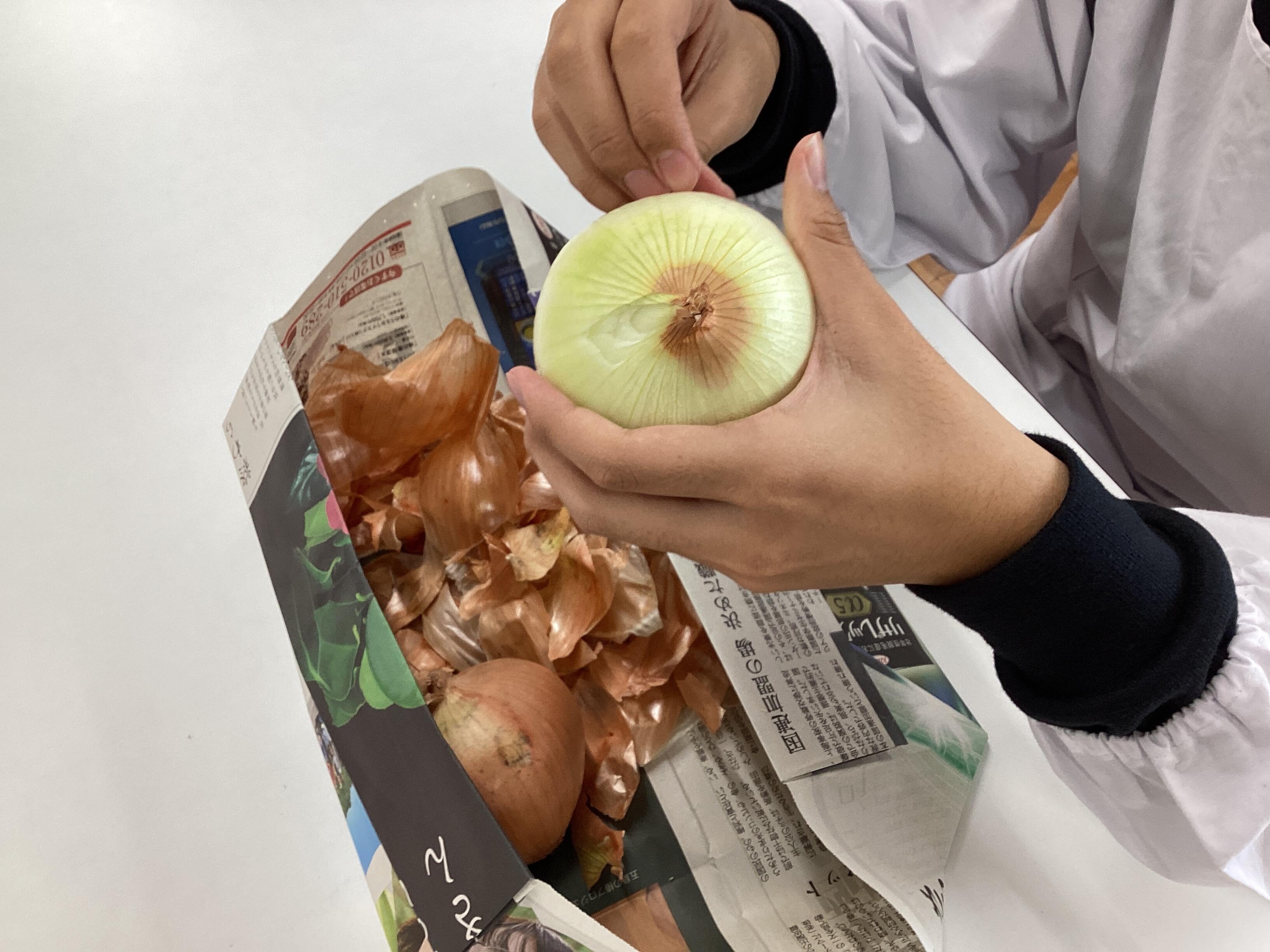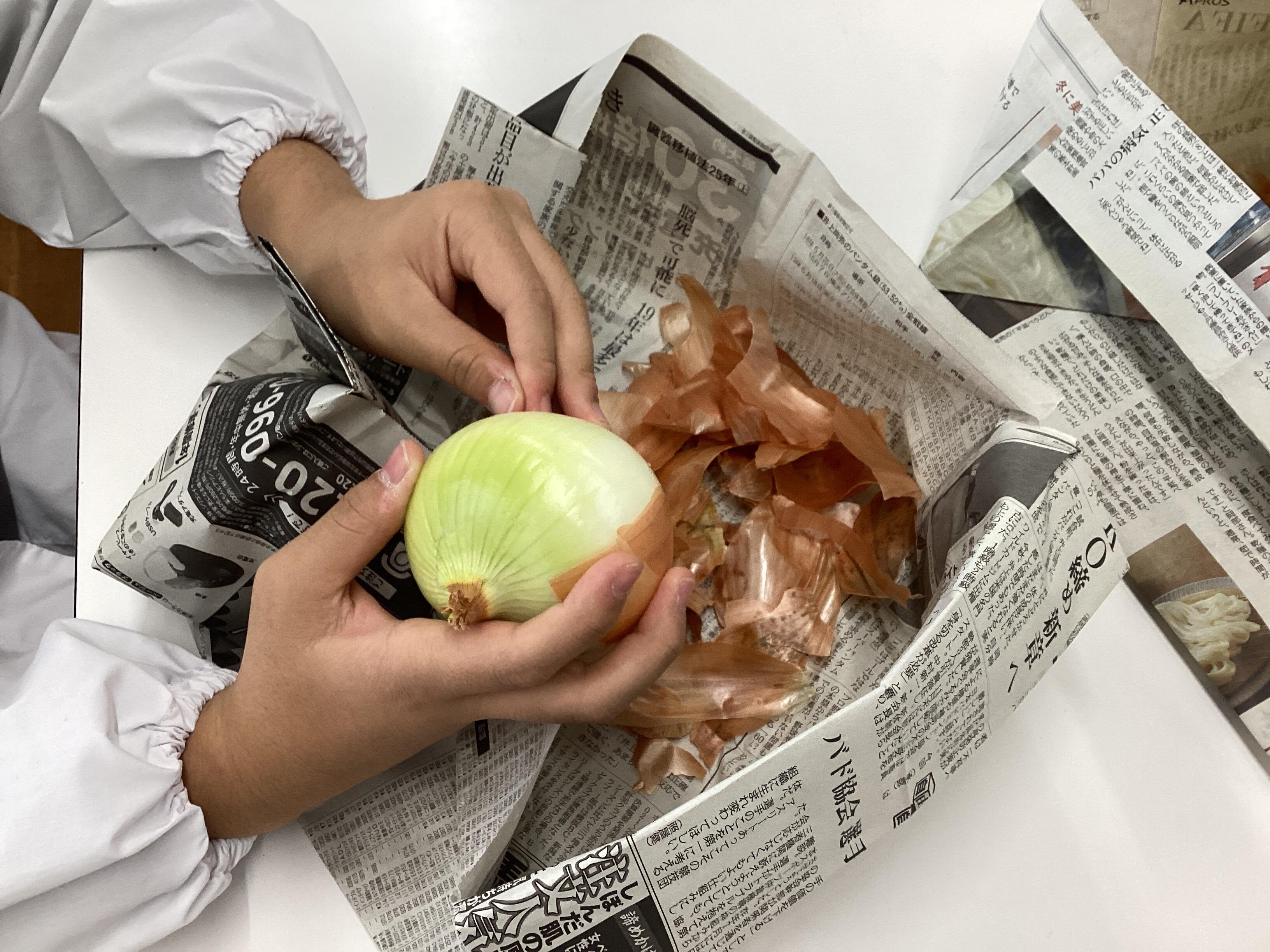 11月25日(火)に翌日の給食の(カレーライス、フレンチサラダ)に使う玉ねぎの皮むきを中学部2年生の生徒がしてくれました。