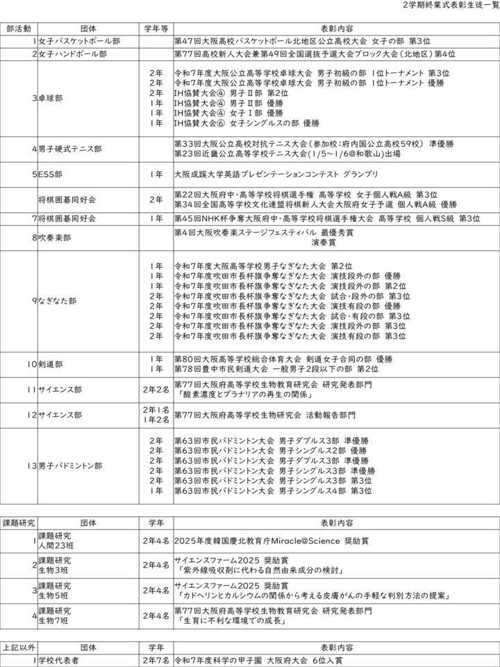 この2学期中には非常に多くの受賞がありました。ご紹介させていただきます。